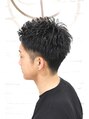 横の膨らみを抑え、フロント、バックにパーマをかけ動きや束感を出しやすくしました!整髪料はジェルワックスです!黒髪でも束感のでるオススメスタイルです!