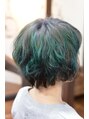 ヘムラインはスタイルをしめるためにブリーチせず暗めで、上部はブリーチ後グレーとグリーンのメッシュをのせました♪