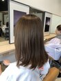 退色して明るくなってきたので、規定内カラーに♪♪暗くても透ける抜け感カラープラチナベージュ。カットは普段は内巻きに綺麗にまとまるように重ためベースにして表面画ふんわり動くようにレイヤーとドライカットで隙間をプラス♪♪