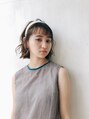bobベースのカットに、ワンポイントで軽い質感を、、◎カチューシャやヘアアクセサリーをつけてのアレンジもとってもかわいいです!カラーリングはブラウン系のベージュカラー。