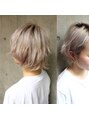 ホワイトブリーチを施したプラチナショート。毛先にスライドカットを入れて柔らかい仕上がりに。ウルフショートだから動きが出て軽やかに。