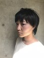 丸みのあるマッシュウルフ。しっかりレイヤーを入れて動きを出します。襟足が短くても 耳後ろの髪を襟足に見立ててウルフに。後ろ姿が 長くならないようにバランス調整しているのがポイント。