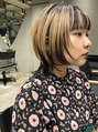 少し軽さを出したボブウルフ スタイル!顔まわりに長さを持たせることで小顔効果もあるウルフスタイルです!カラーはセクションカラーで表面と内側にコントラストを持たせたデザインカラーです!ケアカラー、ケアブリーチで優しくカラーします!