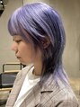 顔周りに軽さを出したミディアムウルフ。カラーリングは2回ブリーチしてしっかり透明感を出してパープルブルーに。カットとカラーリングで個性をしっかり出したエッジスタイルです