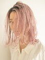 切りっぱなしのミディアムボブスタイル。ブリーチカラーで透明感や軽さを+。普通のピンクではなく少しくすみのかかったアッシュピンクで特別なカラーリングを。