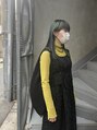サイドを耳の高さまで切り込んだマッシュヘアと、ミディアムに残したバック。長短で作ったウルフスタイルです。表面にデザインブリーチを入れて、グリーンカラーに。コントラストの効いたヘアデザインが人と被らないお洒落スタイルです。