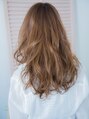 明るめのアッシュブラウンで抜け感のある印象に♪ 重ための前髪でガーリーに仕上げました!! 巻いたときに動きが出るように少しずつレイヤーを入れて ふんわり感を演出☆