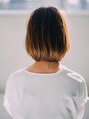 王道なボブスタイル。 バングをセンターで分けることで子供っぽくなりすぎないように。 カラーリングは少しでも動きや立体感の見えるように、ハイライトとローライトを入れました。自然な内巻きになる簡単スタイリングです。