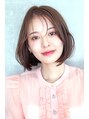 やわらかい質感のシアーベージュカラーに、ナチュラルな内巻きボブで女性らしさを引き立てたスタイル。ショートカット/レイヤーカット/ボブ/髪質改善/酸性ストレート/縮毛矯正/ストレート/デザインカラー/インナーカラー/ブリーチ/イルミナカラー