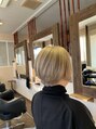 ハイトーンダブルカラーホワイトブロンドショートレイヤーボブ