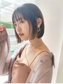 耳かけでタイトにおさめるボブスタイル。顔まわりに短い毛を作ってあげると、おくれ毛風になるのが素敵ですツヤのあるカラーを合わせてあげるのもオススメです