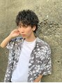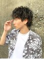 黒髪マッシュウルフにエッジの効いたパーマスタイル。アクセントのあるパーマが余裕のあるスタイルに。毛量は軽くしてあげると黒髪でも重く見えないです。
