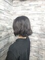 切りっぱなしボブに緩やかな動きをプラス。ミルフィーユエステで髪の内部からケアしながら、白髪染めでも艶とまとまりのある、やわらかな大人スタイルに仕上げました。