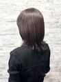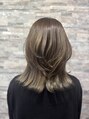柔らかなブラウンベージュに毛先へ向かってくすみグレージュを重ねた大人カラー。ふんわり動くレイヤーが軽さとツヤを引き立て、品よくまとまりながらも程よく抜け感のあるミディアムスタイルです。