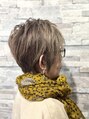 アシンメトリーのショートに明るい髪色を合わせることで、立体感と個性を演出。顔まわりの長さに差をつけることで小顔効果も期待でき、軽さのある動きが大人っぽさとお洒落感を引き立てます。スタイリングも簡単で、毎日扱いやすいのも魅力です。
