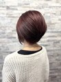 襟足ギリギリの前下がりショートボブに、レッド系カラーをプラス。ブリーチを使ったハイライトで白髪を自然にぼかし、白髪染め特有の重さを軽減。カラーグレスで艶と色持ちを高めた大人上品スタイル。