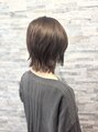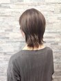 小顔効果のあるショートレイヤー。伸ばしやすい設計で扱いやすく、白髪染めは頭皮に優しいカラーグレスを使用。しみない・刺激が少なく、頭皮の状態に合わせて染め方を調整。明るいピンクバイオレットで透明感のある仕上がりに。