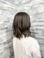 カットとナチュラルブラウンカラーに、ミルフィーユエステで内部から潤い補給。仕上げは柔らかなナチュラルカールで、艶とまとまりのある上品なスタイルに。