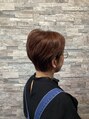 2ヶ月前にベリーショートにしたんですが、今日はバックセクションをメインにカットし、丸みとくびれのあるショートにシルエット調整しました。 カラーはオレンジの気分ということで、明るめのオレンジカラーにし、白髪を目立たなくしてあります。