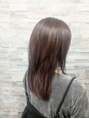 ストレートのセミロングですが、表面にレイヤーを入れて丸みのあるシルエットを出しました。 わかりづらいですが、スソとサイドにハイライトカラーが入っています