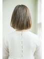 顎下ラインの前下がりボブスタイル。柔らかい質感でかけられるスピエラ縮毛矯正で作りました。シンプルですが、大人っぽい女性像になれると思います