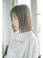 1ブリーチ後、透明感のあるイルミナカラーで作るヌーディーカラー、カットは切りっぱなしボブでラインを見せてモードにもカジュアルにも