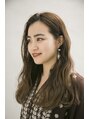 程よくフレアに広がったシルエットとゆるっとしたラフウェーブに巻き、パサついて見えがちなロングをセミウェットな質感に仕上げました。