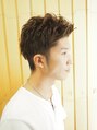 サイド、バックは刈り上げて、後ろに流れるようにパーマをかけました。男性で直毛の方、前髪を上げたい方はパーマをかけるとセットしやすくなるのでオススメです!!