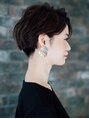 カットはアシンメトリーに、ネープは短めに刈り上げ首回りをスッキリと見えます。ゆる巻きウェーブで、大人っぽく軽やかな雰囲気に持っていきます。 耳掛けが大人っぽい美シルエットスタイルです。