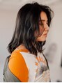 顔まわりにレイヤーが入ったセミディスタイル。外ハネのワンカールをベースに顔まわりを太めのコテで外巻き、バックは軽くウェーブがつく程度に数カ所巻いてニュアンスを。バンングの分け目はジグザグにとってボカすことでオシャレに。