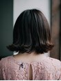 肩ラインの切りっぱなしボブ。トップのみ少しだけレイヤーを入れて動きをプラス。内側の毛量調整をすれば広がりすぎずに仕上がります。毛先はアイロンで外はねに仕上げましょう。