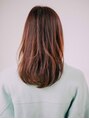 あこがれのさらつやミディアムロング。顔まわりから毛先に軽さとまとまりがでるようにレイヤーを入れています。毛先には軽くワンカールでやわらかな雰囲気になるように仕上げています。