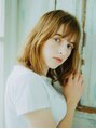柔らかさのあるハイトーンのブロンドベージュのロングボブスタイル!切りっぱなしの質感を残すためスタイリングはあえて巻き過ぎずに表面に動きを出し、顔周りのニュアンスを大切に巻きました。