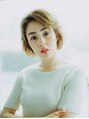 ショートボブのレイヤースタイル。シルエットには丸みを残し、レイヤーの入った毛先にカールをつけることでエレガントさが増します。カラーは明るめですが、品のあるベージュカラーを選びました。