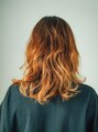 ショートから伸ばし途中の中途半端な長さの人にもおすすめのひし形フォルムのナチュラルミディー。甘めバングもサイドにつながるようにレイヤーを入れて大人かわいい雰囲気に☆ベージュオレンジ系でグラデーションカラーに!
