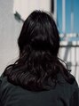 カラーリングは暗めのダークブラウン。カットは顔まわりにほどよくレイヤーを入れ、フロントから見て、少し軽めの印象に。他は重めにして、全体をナチュラルなくせ毛風にまとめました。