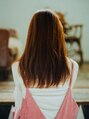 ナチュラルなストレートロングスタイルになります。乾かすだけの簡単スタイリングです。ロングストレートだと重く見えがちですが、オレンジ系の少し明るさのあるカラーリングで、軽さとツヤをプラス!コテで巻いてもイメチェンできます。