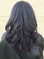 ブリーチ後に深めのパープルでグラデーションを☆光に透けたり髪が動くと色がハッキリ見えます☆赤みの少ないパープルなのでアッシュ系にも見えます☆