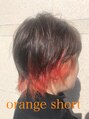 ショートスタイルの右側のインナーをブリーチしてオレンジの鮮やかなオレンジにしています。退色したら違う色を入れたりして楽しむ事もできます。カラーを楽しみたいショートならシバまで^_^ブックマークも宜しくお願いします。