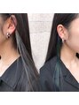サイドインナーだけブリーチをしてして左はシルバー、右はブルーとグリーンでオリジナルのカラーに。サイドのみのブリーチだけでしたら、カラー料金プラス2000円からで短時間低料金で可能です。カラー履歴などでも施術がかわりますのでシバまでご相談下さい。