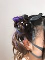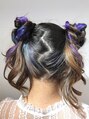 パープルインナーカラー リボンアレンジ