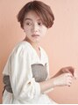 スッキリ小頭に!デキる女風ショート。スッキリとしたえり足がポイント。えり足の髪が膨らみやすいとお悩みの方に、内側を剃って短くするか、少し厚みを残して重さで広がりを抑えるカットを得意としています。ショートのフォルムを大切にカットします。