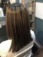 ブリーチでハイライト、地毛に近い位のローライトを全体にランダムに入れました。全体は、ハイライト部分にしっかり入りすぎないように、10トーンのアッシュベージュをのせました。