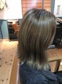 ブリーチでハイライトを全体に入れて、上からN.カラーのフォギーベージュの12トーンを入れました。くすみ感も出て、ベージュの柔らかさも出て立体感のあるカラーになりました。