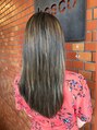 ハイライトはブリーチ、ローライトは地毛位のブラックです。ランダムに全体的にいれていき、白髪が気になるのをカバーしました。あえてムラをつくり、馴染ませます。