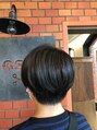 ブリーチハイライトを入れた後、7トーンのブルーアッシュにインディゴを足してオンカラーしました。カットは丸みを出したマッシュベースで、軽さをつけるために毛量調整しました。