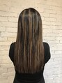 毛先は重めにラインを揃えて毛量調整しました。ハイライトはブリーチで、地毛をベースに全体的に入れました。白髪がチラチラと気になる方におすすめです。