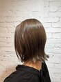 カットは鎖骨上のミディアムボブです。カラーは、ベースが10トーン位にぬけているところに、カーキアッシュの8トーンをいれました。