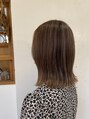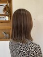 全体をブリーチで細めにハイライトを入れました。ハイライト以外はシルバーアッシュの9トーンで染めました。カットはミィディアムの切りっぱなしのラインで、外ハネできる長さです。