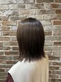 鎖骨上の長さでフラットに揃えて内側の毛量調整をしました。表面は重さを少し残してあります。カラーは、ベースが12トーンくらいに褪色している所に8トーンのシルバーアッシュをのせました。